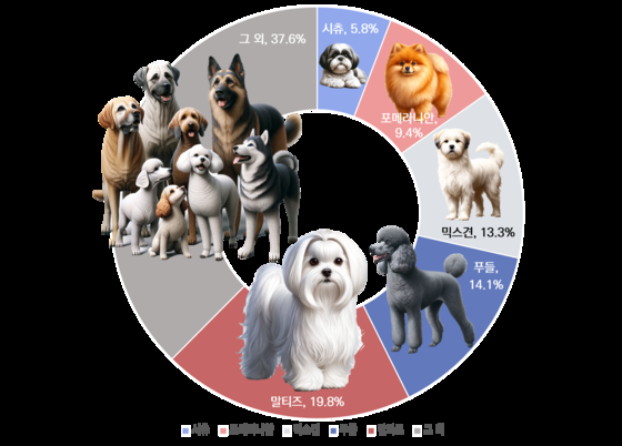 The graph shows percentages of various dog breeds registered in Seoul. [SEOUL METROPOLITAN GOVERNMENT]