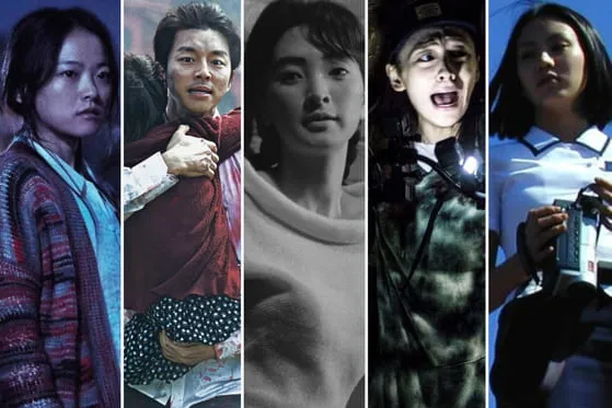 From left: ″The Wailing″ (2016), ″Train to Busan″ (2016), ″The Housemaid″ (1960), “Gonjiam: Haunted Asylum” (2018) and “Memento Mori” (1999). [SCREEN CAPTURE]