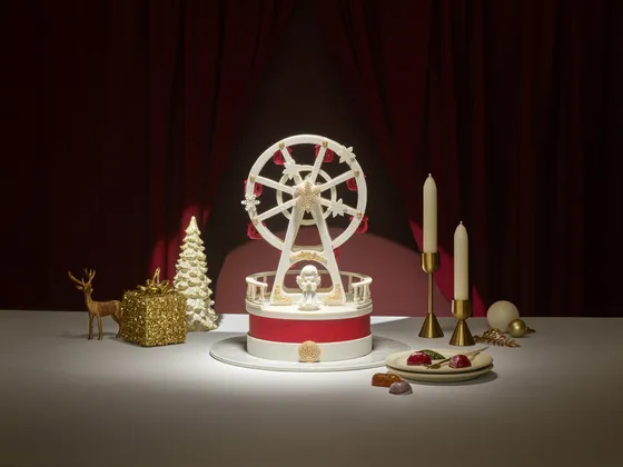 Among its whopping 13 different holiday cakes, Grand InterContinental’s headline gâteau this year is the Wheel of Wishes cake (350,000 won), which features a large chocolate artwork resembling a Ferris wheel. Taking 24 hours to make, according to the hotel, its wheels can actually rotate as well. Under it are small chocolate boxes that contain bonbons like the viral Dubai chocolate, stollen and caramel. Last year, the hotel put forward a similar cake but with a merry-go-round in lieu of the wheel.