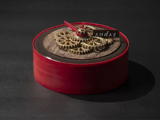 Andaz is also offering an End of Year chocolate cake (150,000 won), only available on Dec. 30 and 31. It is overlaid with a delicate clock design. Its wheel chains are molded by hand by the hotel’s pastry chef, according to the hotel.