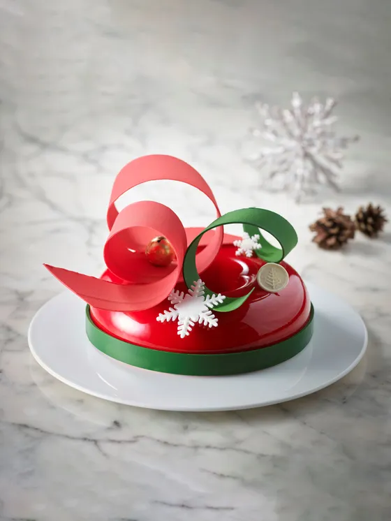 Four Seasons Hotel Seoul’s Crimson Noel Cake, priced at 120,000 won, is an elegant yet wholesome pound cake baked in a Bundt pan, covered with red glaze and topped with chocolate ribbons. Infused with spices, nuts, dried fruit and a dark rum ganache, it evokes a warm Christmas spirit.