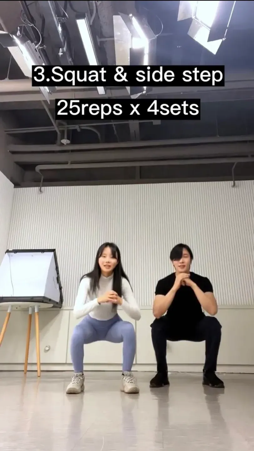 1) Do a normal squat then move one step to the right to do another squat.