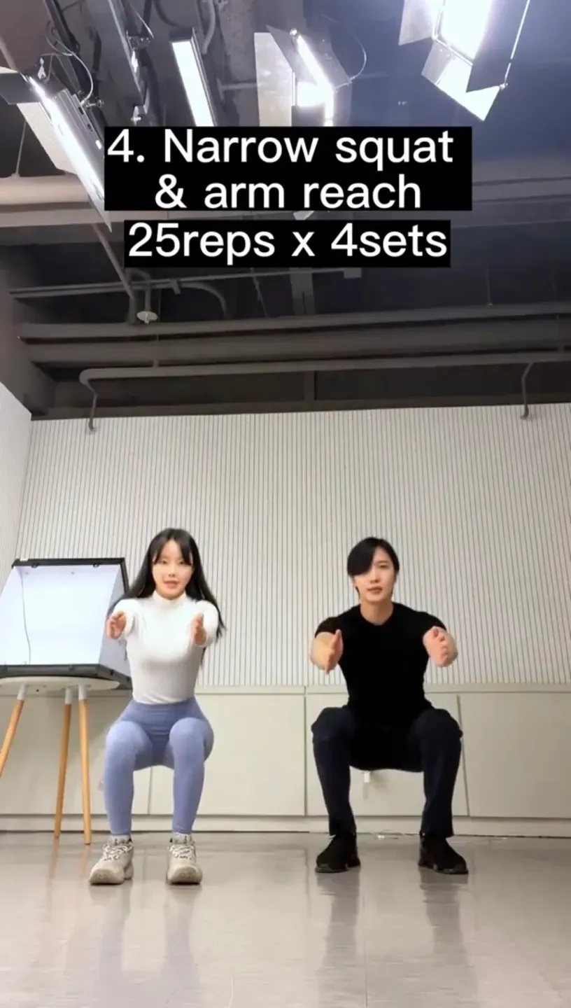 4. Narrow squat & Arm reach