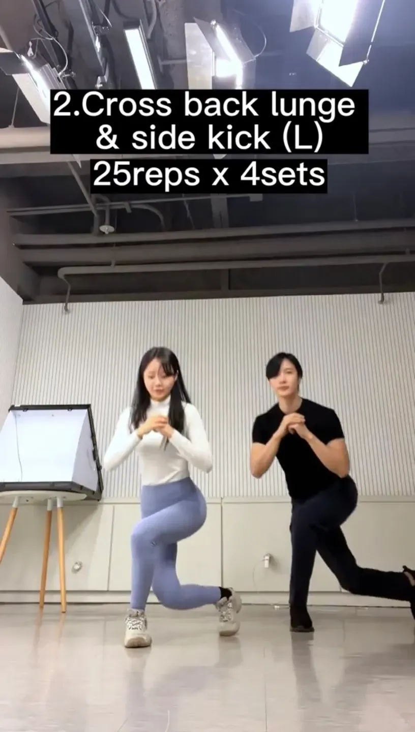 2. Cross back lunge & side kick (L)