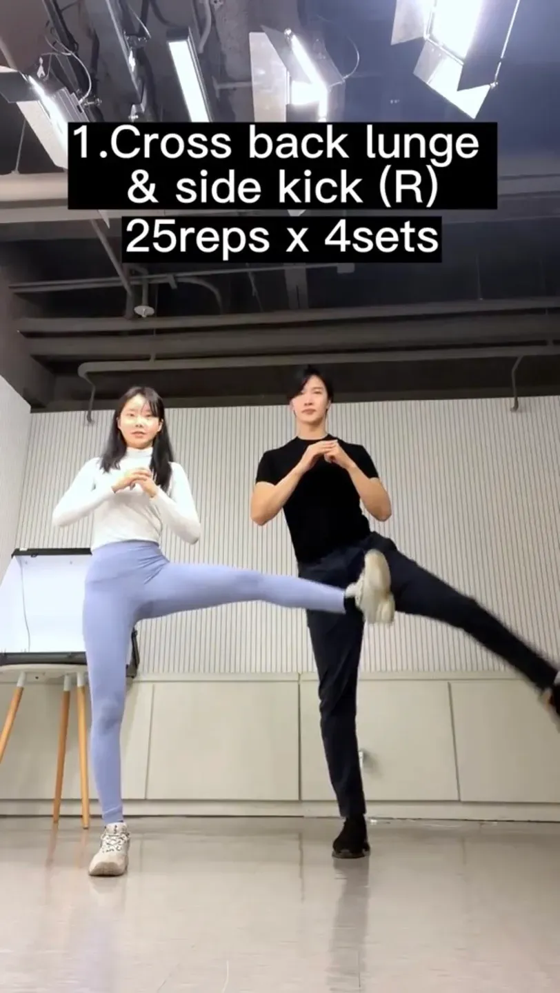 1. Cross back lunge & side kick (R)