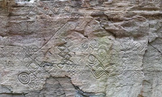 The ″Petroglyphs along the Bangucheon Stream,″ in Daegok-ri, Eonyang-eup, Ulju County, Ulsan, are seen on May 27. [YONHAP]