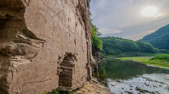 Upstream, the Cheonjeon-ri site contains 625 carvings ranging from Neolithic and Bronze Age images to Silla-era inscriptions and geometric patterns, underscoring its historical and artistic significance.