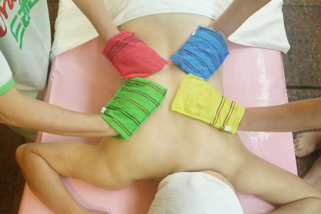 The seshin culture took on a more distinctive character with the introduction of the coarse-textured Italy towel — the green, sandpaper-like exfoliating cloth — in the 1960s which made exfoliation more effective and helping define Korea’s signature scrubbing method. Around the same time, the profession of seshinsa also emerged, transforming what was once a household chore into a specialized skill and further establishing seshin as part of Korea’s national tradition.