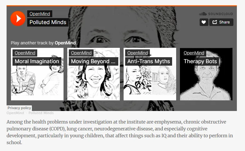 It's well understood that air pollution affects the health of our bodies, but scientists are still learning about the impacts of pollution on our brains and our minds. Rosalind Wright is leading the effort to weed out the myths and to understand the real dangers. A major challenge, she says, is that all the various environmental factors hit us together, combining their effects and interacting in complex ways. Wright is a physician and professor of pediatrics and public health at the Icahn School of Medicine at Mount Sinai in New York City. She is also co-director of Mount Sinai's Institute for Exposomic Research. In this episode, she talks with OpenMind co-founder Corey S. Powell about emerging research that is identifying the neurological effects of airborne toxins. She also offers strategies that we can follow to reduce our risks. (This conversation has been edited for length and clarity.)