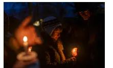 Mourners in Wyoming honor Bear 399, a bear who became well-loved in the community but was killed when hit by a car in October 2024. Natalie Behring/Getty Images