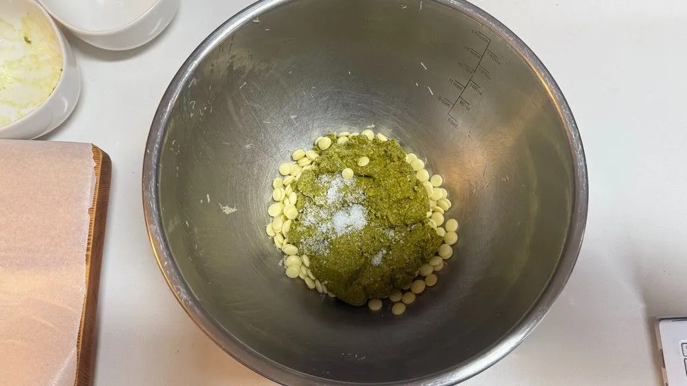 I photograph the moment after adding salt to the pistachio paste, instinctively feeling the need to document it. [WOO JI-WON]