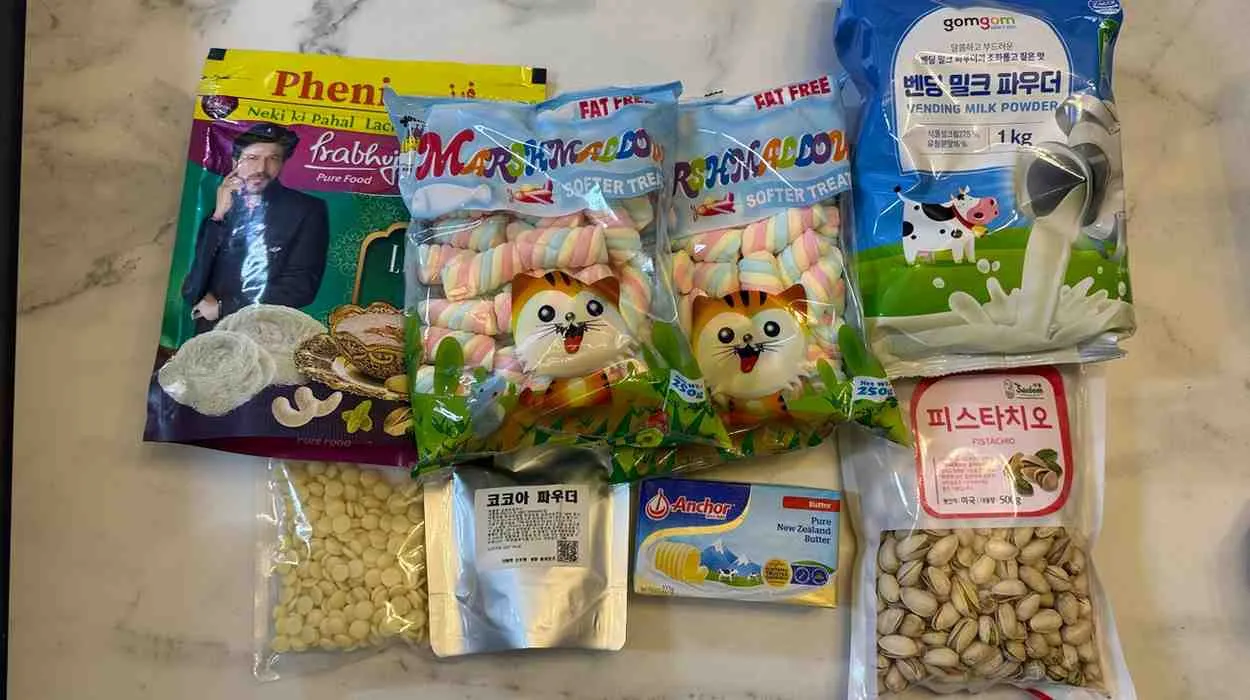 There was no skim milk powder, so I settled for vending milk powder. Kadayif was nowhere to be found — unless one was willing to pay 34,900 won for 500 grams, with delivery set for next month. I opted instead for the only available alternative, a 200-gram package of pheni, a close substitute with a similarly mild, neutral flavor, though it carries a slightly more toasted note. It cost 12,500 won and came with next-day delivery — though the price had already doubled from just two weeks earlier.