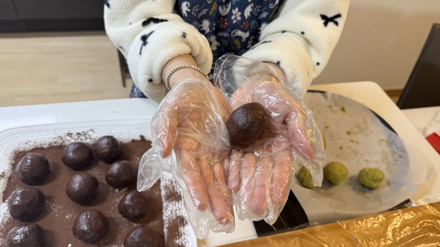 I wrap the pistachio ball in melted marshmallow. [WOO JI-WON]