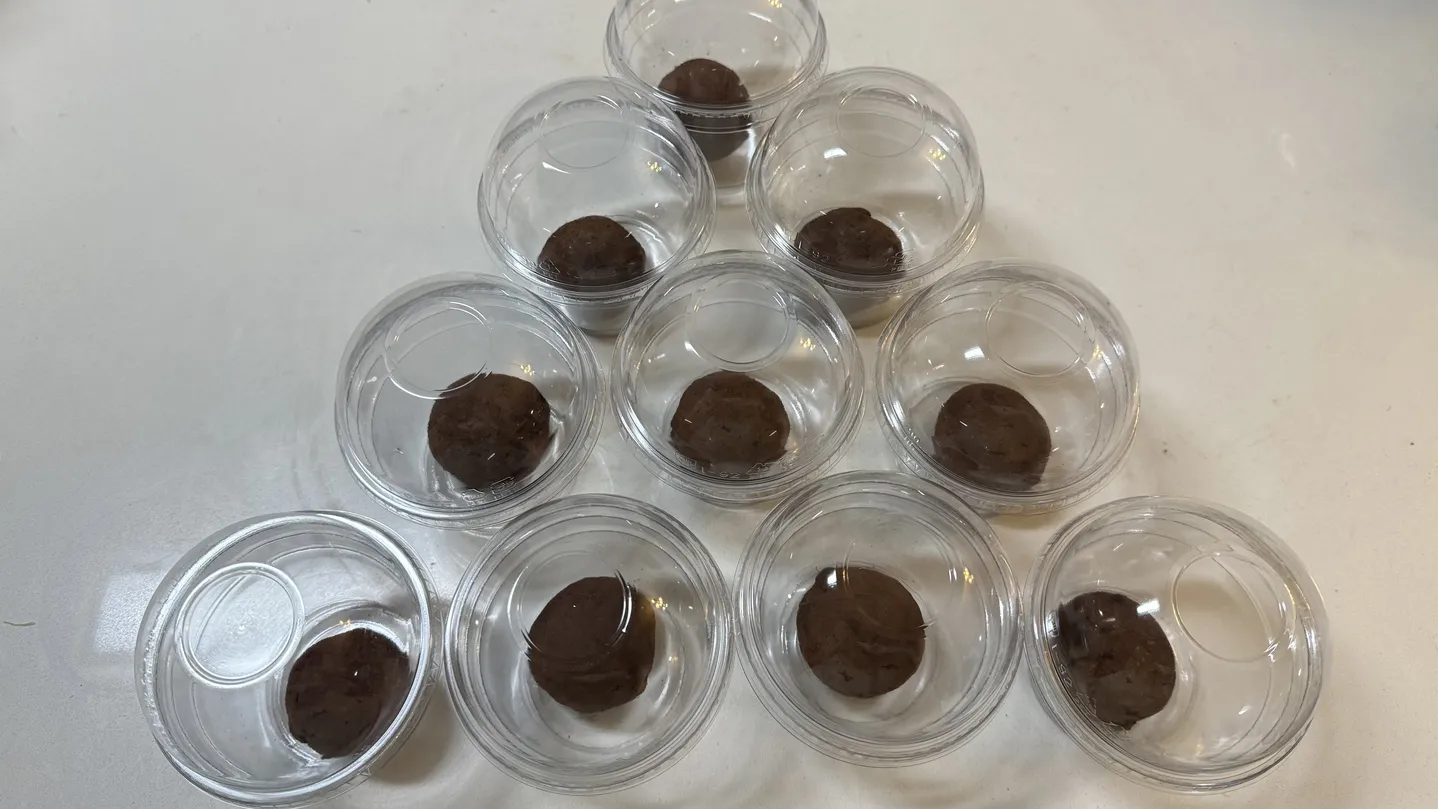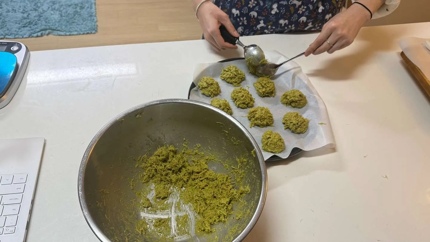 I portioned out 36 to 38 grams per piece using an ice cream scoop, leaving about fifteen balls. Then they went into the fridge for 25 minutes, as instructed. This was failure No. 2.