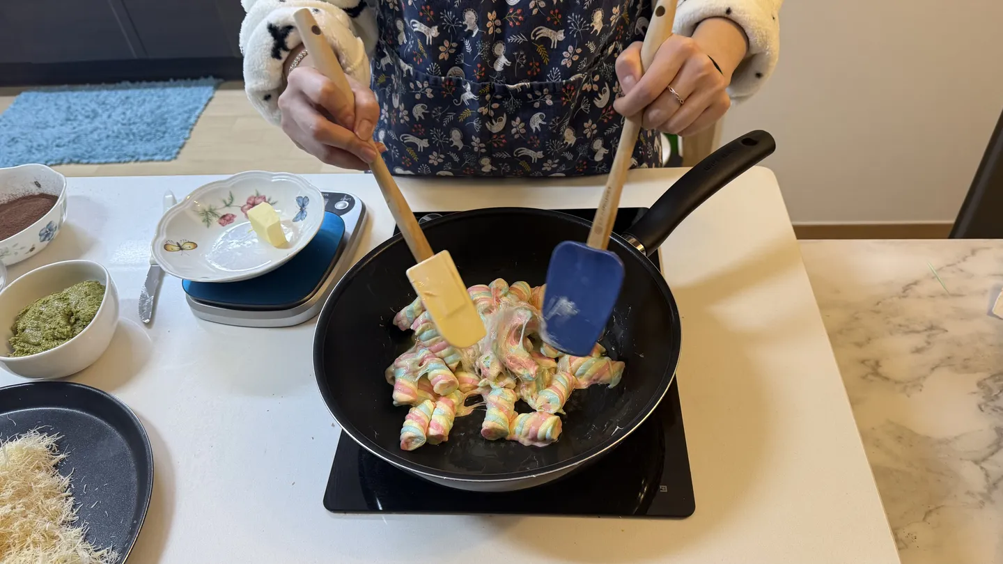 After three hours, it was time to wrap each pistachio ball in a marshmallow. Some tore. Some were far too thick. At that point, I abandoned perfection and developed a deep respect for cafes that somehow achieve impossibly thin marshmallow shells.