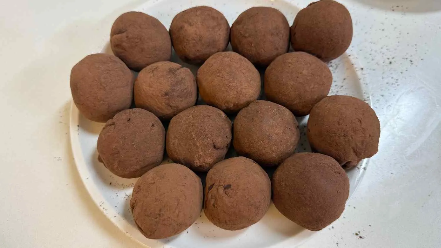 A group of Dubai chewy chocolates, their dents and flaws covered with a dusting of chocolate powder [WOO JI-WON]