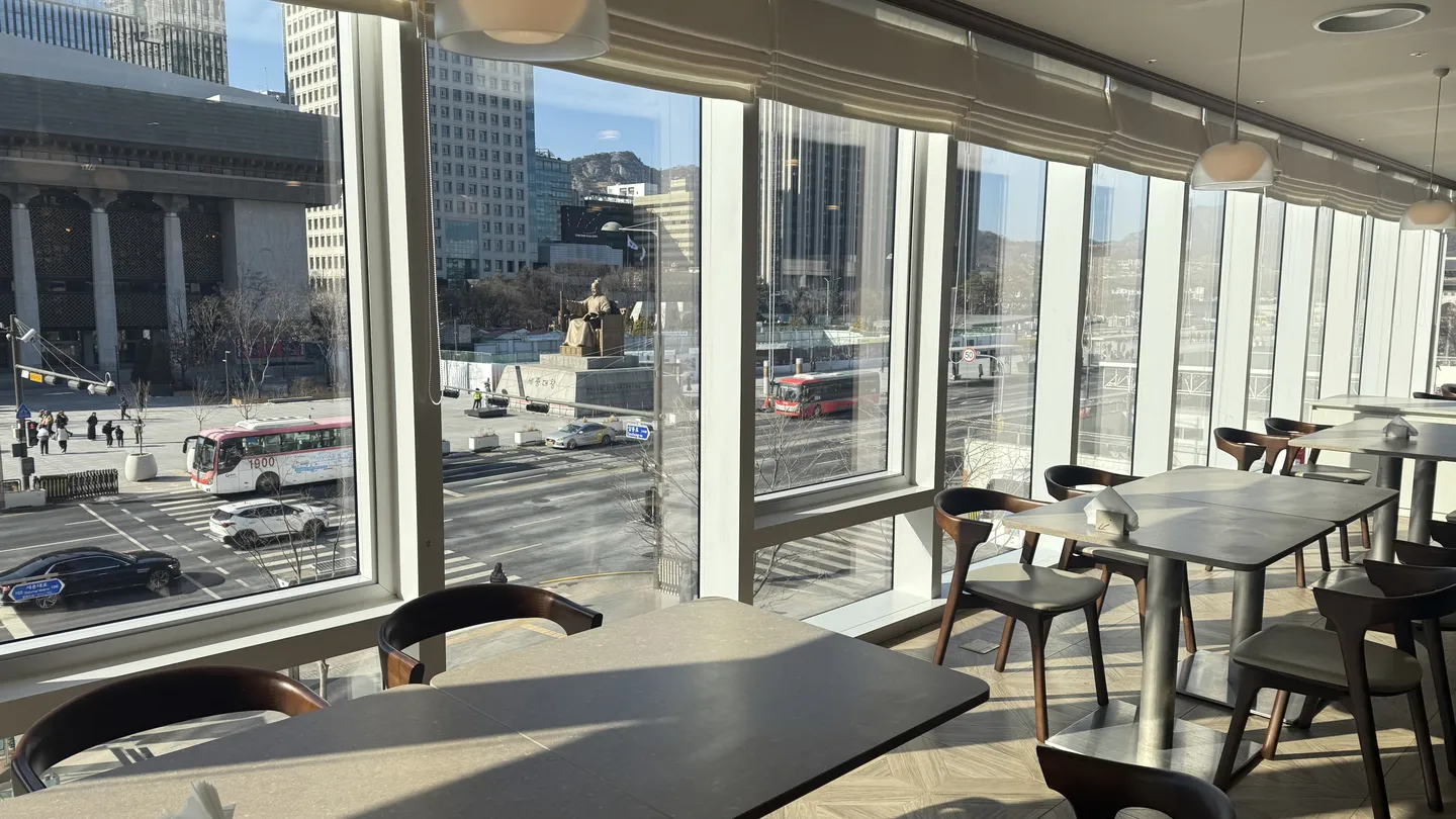 Closer to the statue of King Sejong the Great, Starbucks Gwanghwamun is a well-known spot for its views of the square.