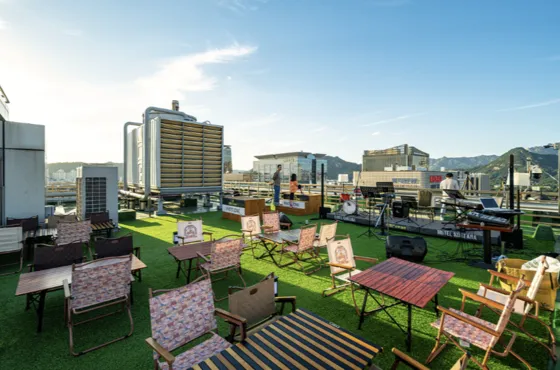 The hotel occasionally operates a dalbit pocha, or moonlight tent bar, where guests can enjoy seafood on the rooftop.
