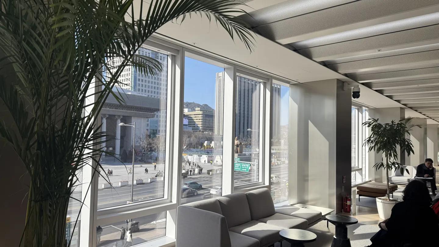 While office buildings dominate the area around the square, the KT Gwanghwamun Building offers public spaces on its first and second floors.