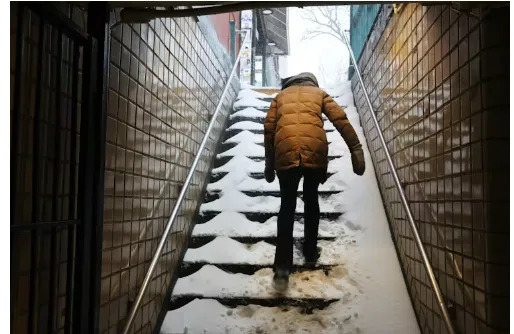 Walk carefully on snow and ice, particularly stairs like these in a New York subway station on Jan. 25, 2026. At home, be sure to clear snow off your steps soon after a storm so ice doesn’t build up. Spencer Platt/Getty Images
