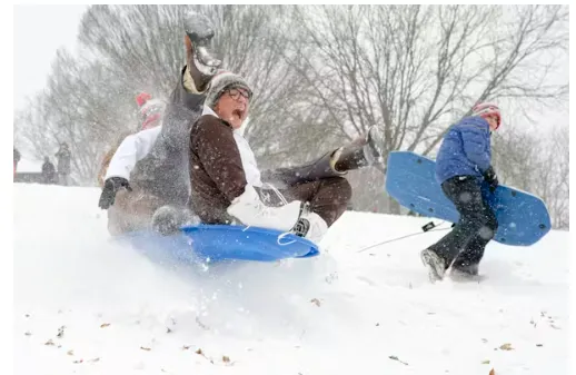 Playing in the snow, like this group was at Cherokee Park in Louisville, Ky., can be the best part of winter, but be sure to do it safely. At least three people died in accidents while being towed on sleds behind vehicles on icy streets during the January 2026 storm. Jon Cherry/Getty Images