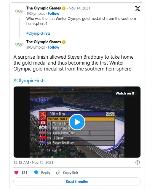 Bradbury also famously won Australia’s first Winter Olympic gold medal in the 1,000m speed skating in 2002.