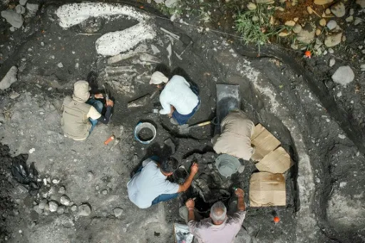 Researchers have so far recovered 49 bone pieces including a femur, vertebrae and ribs from the mastodon and giant sloth