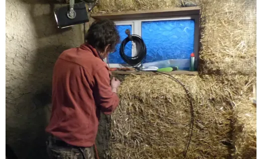 Stuart Walker working on his straw bale office. Lorna Jackson., CC BY-NC-ND