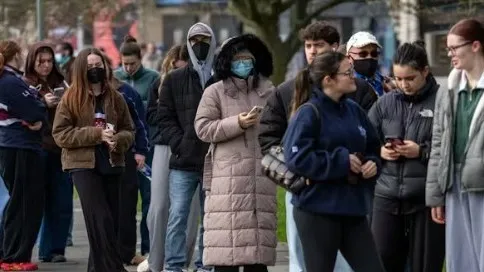 Staff and students queue to receive antibiotics at the University of Kent, UK, after a deadly outbreak of bacterial meningitis. Carl Court/Getty Images