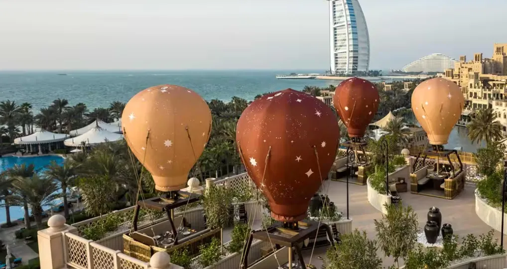 Balloons at The Palace returns to Jumeirah Al Qasr, offering culinary voyages on a stunning terrace with views of Jumeirah Burj Al Arab. Choose from three menus inspired by the historical Spice Route: Breakfast in the Clouds, Afternoon Tea in the Sky or The Spice Route Journey Dinner.