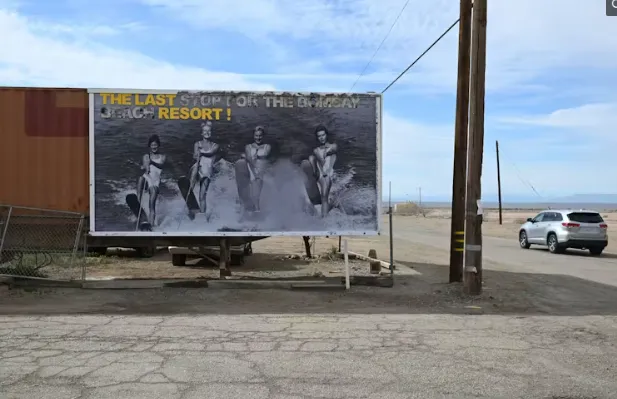 An old billboard for Bombay Beach advertises waterskiing on the Salton Sea. That would have been the scene there in the 1950s and ’60s, but not today. Robyn Beck/AFP/Getty Images