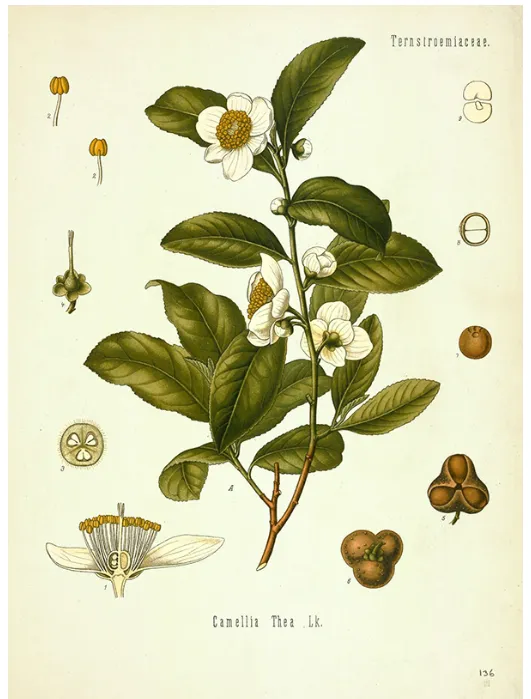 All true teas are made from the leaves of the shrub Camellia sinensis (shown above), while herbal teas or tisanes are made from a variety of plant material. CREDIT: KÖHLER’S MEDIZINAL-PFLANZEN 1887 / PUBLIC DOMAIN