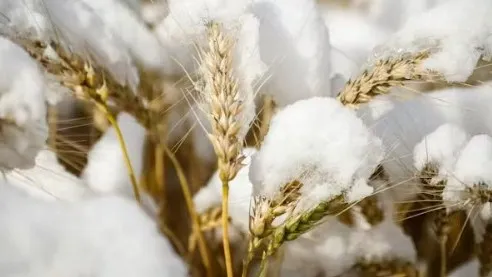 Snow covers wheat plants after snowy weather near Cremona, Alta. THE CANADIAN PRESS/Jeff McIntosh
