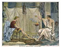 Aristotle’s teachings later created a storm in the Catholic Church, with various theologians worrying that Aristotle’s ideas were becoming too dominant. Étienne Tempier, bishop of Paris, responded to these criticisms by issuing the Condemnation of 1277, prohibiting the teaching of some 219 propositions — many of them derived from the teachings of Aristotle — and warning that those who disobeyed could be excommunicated.Aristotle teaching Alexander the Great. An 1866 engraving by Charles Laplante, a French engraver and illustrator. (Wikimedia Commons)