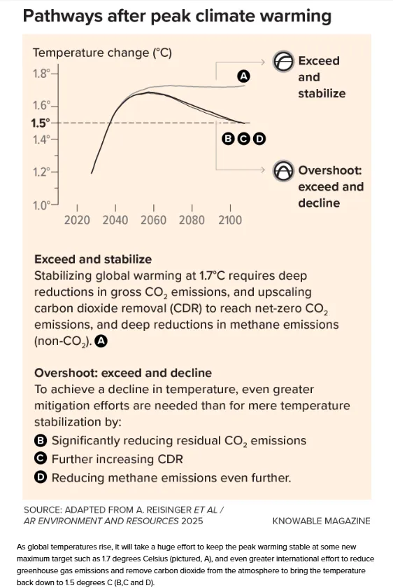 Andy Reisinger, a climate change researcher and independent consultant who serves on He Pou A Rangi, the New Zealand Climate Change Commission, has studied these issues. A longtime contributor to the Intergovernmental Panel on Climate Change (IPCC), he has helped map out the various ways the world might exceed but then return to 1.5 degrees C of warming. Reisinger recently coauthored a 2025 Annual Review of Environment and Resources paper that explores the concept of climate overshoot.