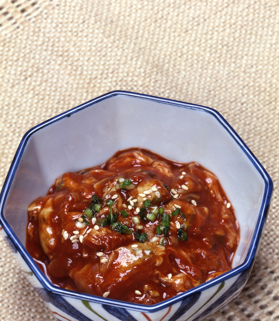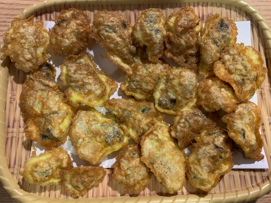 Kang’s Korean Pancake Diner (translated) in Yongsan District, central Seoul, offers oyster jeon (18,000 won) cooked to golden perfection as a seasonal menu during winter, and a plate of eoriguljeot (7,000 won).