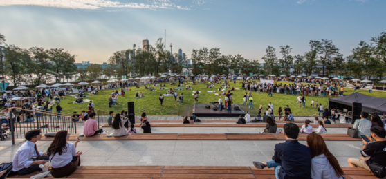 Since the Han River's surface takes up a substantial amount of the city, there are many viewpoints where you can enjoy the riversides. However, this manmade island is still relatively fresh on the list, functioning as a cultural complex. Far-reaching grass yards, galleries, restaurants, a bookstore, cafes, and event venues welcome the newcomers. Spending an afternoon or an evening on the island with a picnic mat and a basket is a good weekend plan to relax. The sunset view from Nodeul Island is famous, as the light looms over the 63 Building and reflects off the water's surface.