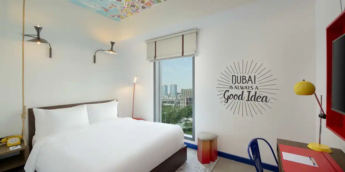 This homegrown hotel in Downtown, near The Dubai Mall, is designed with quirky, locally-inspired art and a culturally-connected soul. Putting the ‘fun’ into functional, Rove takes the frills out of standard hotel offerings and replaces it with what you really need. Make use of their DIY laundromats, 24-hour supermarket (perfect for late night snacking), self-service check-in stations, seamless Wi-Fi and in-room smart TVs. Don't forget to fuel up at their deli-style restaurant TGI Fridays, which serves up hearty breakfasts and lunches. You’ll find Rove hotels in other central locations such as Dubai Marina.
