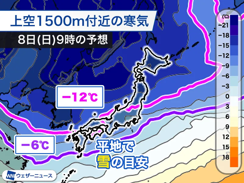 また、7日(土)から8日(日)は再び冬型の気圧配置が強まり、非常に強い寒気が北海道付近まで南下する見通しです。日本海側では大雪や吹雪に警戒が必要です。