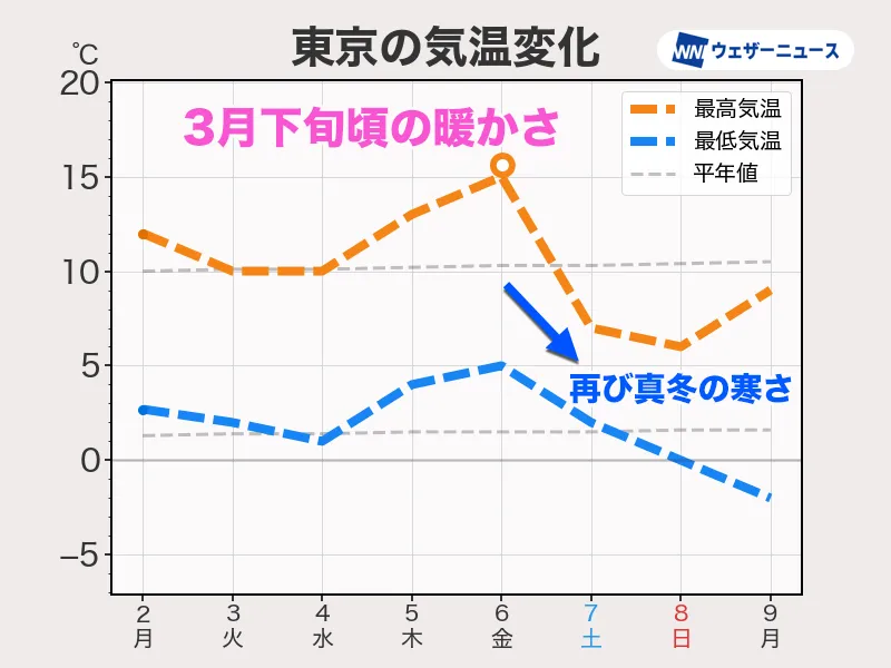 ・週中頃は気温高め 週末は真冬の寒さ戻る
