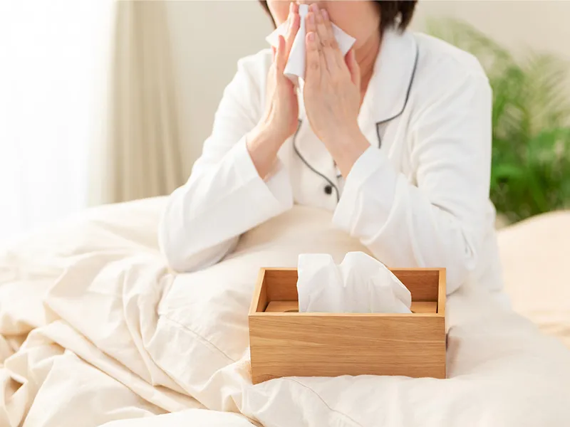 症状としては、鼻水、鼻詰まり、くしゃみ、目のかゆみ、頭がボーッとしてしまうことなど。こうした症状がなぜ、朝方に起こるのでしょうか。