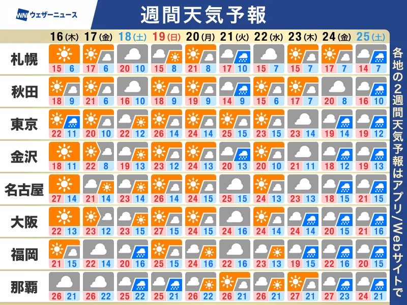 週間天気予報 週末は東京など夏日予想も 小笠原諸島は台風による高波注意