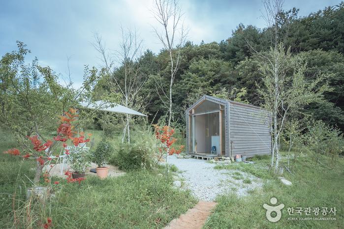 동화 속 오두막을 연상하게 하는 Real Farmcnic IN THE HUT팜크닉을 예약하면 음료와 잔, 블루투스 스피커가 기본으로 제공된다. 블루투스 스피커로 음악을 감상하는 것도 좋지만 바람 소리, 풀벌레 소리 등 가을 정취 가득한 ASMR을 재생하면 한층 질 높은 휴식을 취할 수 있다.