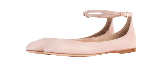 발레리나 슈즈는 핑크가 진리지. 아르마니의 연분홍색 라운드 토 플랫이다. 100% 양가죽에 발목을 강조하는 버클 스트랩이 달려 발목이 얇고 발에 살집이 없는 사람에게 적합한 디자인이다. 플레어 진, 부츠 컷 등 통이 좁은 바지와 잘 어울린다.