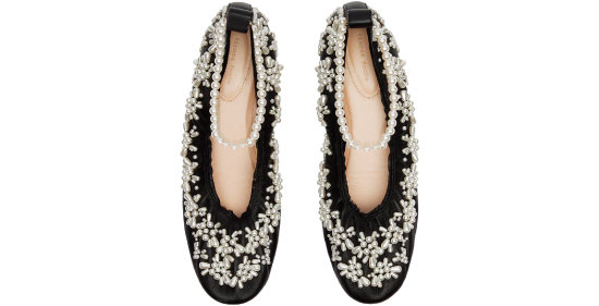 머리부터 발끝까지 러블리해지고픈 이는 주목! 시몬로샤가 발레리나 플랫을 꽃 모양 비즈 장식으로 도배했다. 갑피는 나파 양가죽, 밑창은 송아지 가죽으로 만들었다. 발목을 감싸는 진주 스트랩이 킥 포인트.