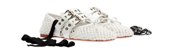 매년 돌고 도는 간절기 만능 아이템 플랫슈즈. 굽이 낮아 편한 게 이 신발의 최대 장점이다. 단, ‘굽=자존심’인 세상에서 편하고 싶어 자존심을 내려놨다고 스타일까지 포기할 순 없지 않은가. 이럴 때 챙길 것이 바로 유행이다. 올봄 플랫 유행의 발원지는 명품 브랜드 ‘미우미우’. 이번에는 ‘발레리나 슈즈’다.