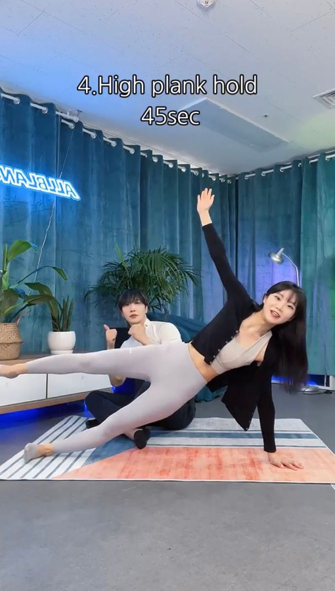 오늘 배운 운동을 매일 따라하신다면 옆구리살도 빼고 코어도 단단해지는 효과를 볼 수 있으실거예요~