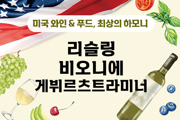 와인21이 연재하는 [미국 와인 & 푸드, 최상의 하모니]는 양윤주 소믈리에와 함께 미국 와인과 미국산 식재료를 활용한 음식의 조화로운 페어링을 가이드한다. 총 9편의 콘텐츠 중, 이번에 소개할 품종은 미국 와인의 놀라운 다양성을 보여주는 리슬링(Riesling), 비오니에(Viognier), 게뷔르츠트라미너(Gewurztraminer)다. 주로 원산지인 독일과 오스트리아, 프랑스를 떠올리게 되는 품종들이지만 이민자들이 미국에서도 재배하기 시작했고, 현재 미국의 많은 와인메이커들이 이 품종들을 사용해 뛰어난 화이트 와인을 생산하고 있다. 세 가지 품종으로 생산한 미국 와인은 모두 더운 여름날 차갑게 칠링해 즐기기 좋고, 여름 보양식이나 한식 상차림의 페어링 와인으로도 훌륭한 선택이 될 것이다.
