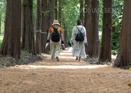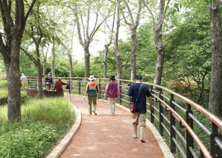 지난 8월 하늘공원의 명소인 메타세쿼이아길에 난지 테마관광 숲길이 조성됐다. 사계절 내내 다양한 꽃이 피어 인기가 많았던 거리에 푹신한 야자 매트가 깔린 소곤소곤길도 함께 탄생한 것이다. 모든 방문객이 맨발로 안전하고 편안하게 걸을 수 있는 건강 산책로인 동시에 아름다운 풍경을 감상할 수 있는 곳이다.
