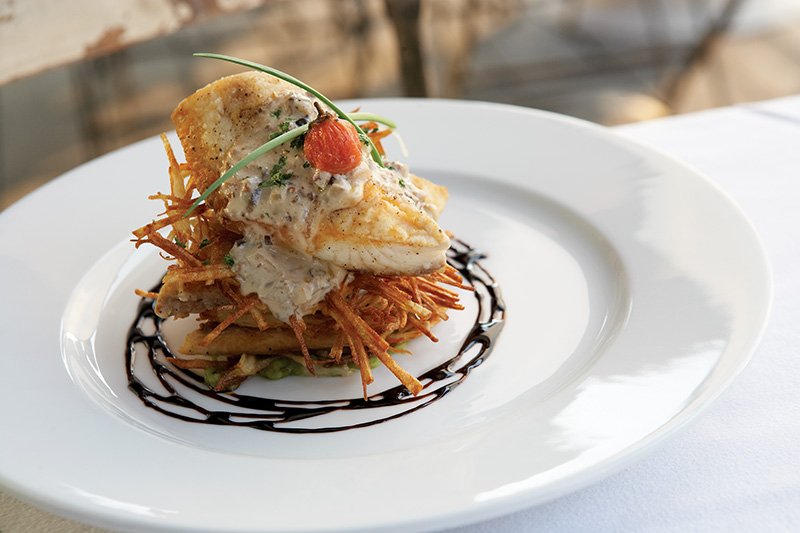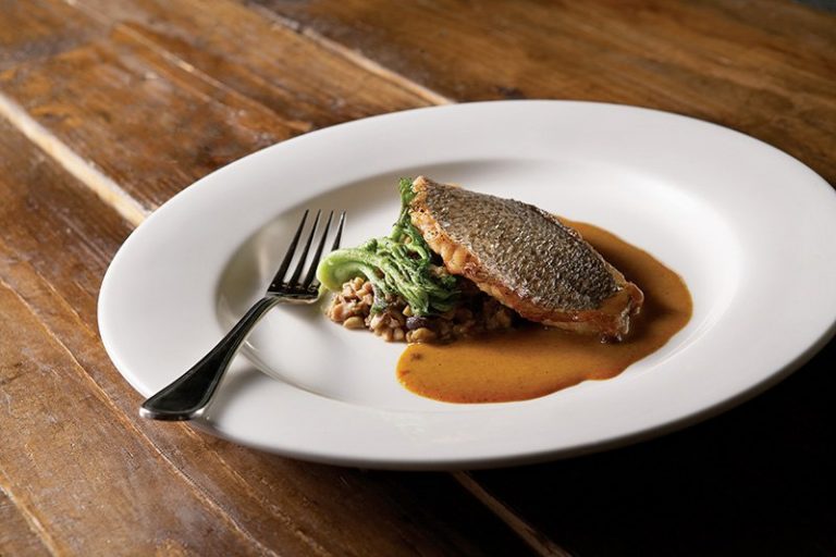 “대개 도미구이에는 발사믹 소스를 곁들이는데 여기에 세 가지 소스를 더 곁들여 다양한 맛을 느낄 수 있게 연출해 보았습니다. 말린 자두와 요구르트로 만든 요구르트 사우어 소스의 맛이 가장 강하게 나타나고 나머지 소스들은 맛이 그리 강하지 않으면서도 제 역할을 조금씩 하며 조화를 이루기 때문에 풍부한 맛을 느낄 수 있습니다. 화려한 가니시보다는 도미의 폭신한 식감과 바삭한 감자 케이크로 씹는 맛에도 재미를 주었지요. 보기에는 화려하지만 재료를 잘 섞기만 하면 되는 소스를 활용한 요리라 만들기도 쉽습니다.” – 셰프 P